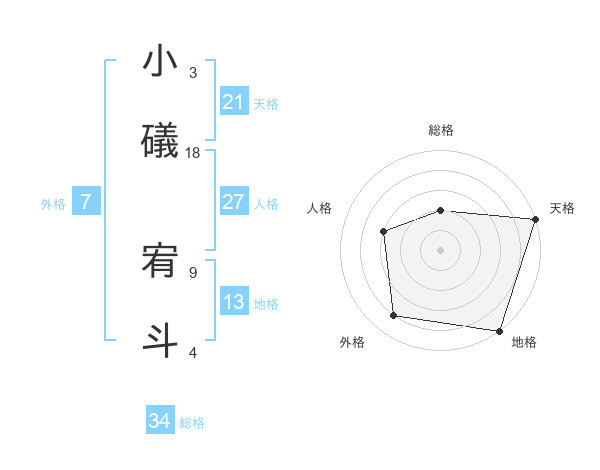 小礒 宥斗さんの総格は34画の2点!