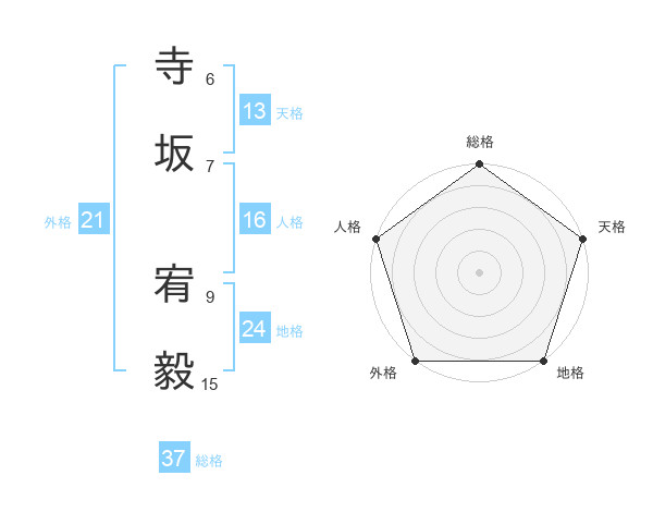 寺坂 宥毅さんの総格は37画の5点!