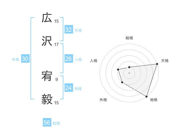 広沢 宥毅さんの天格は32画の5点!