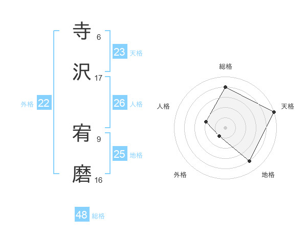 寺沢 宥磨さんの外格は22画の1点!