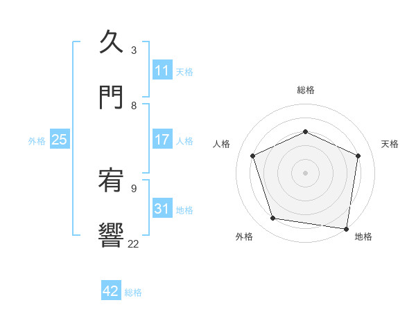 久門 宥響さんの総格は42画の3点!