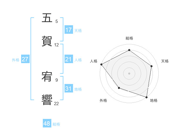 五賀 宥響さんの総格は48画の4点!