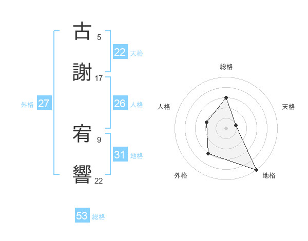古謝 宥響さんを姓名の画数から五運を鑑定