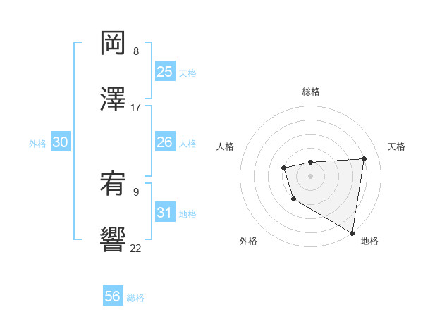 岡澤 宥響さんの天格は25画の4点!