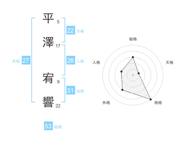 平澤 宥響さんを姓名の画数から五運を鑑定