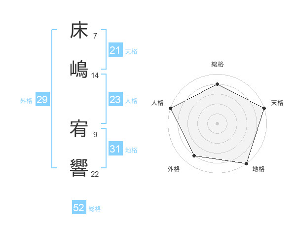 床嶋 宥響さんの総格は52画の4点!