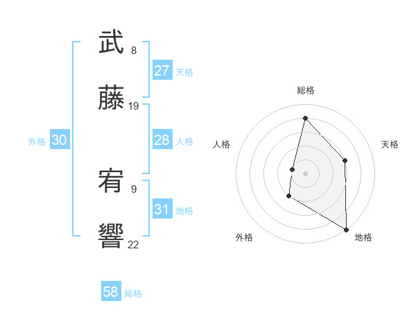 武藤 宥響さんの総格は58画の4点!