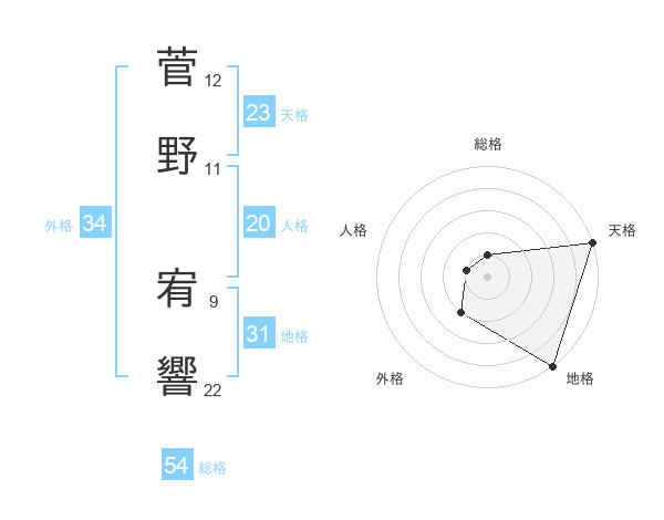 菅野 宥響さんの天格は23画の5点!