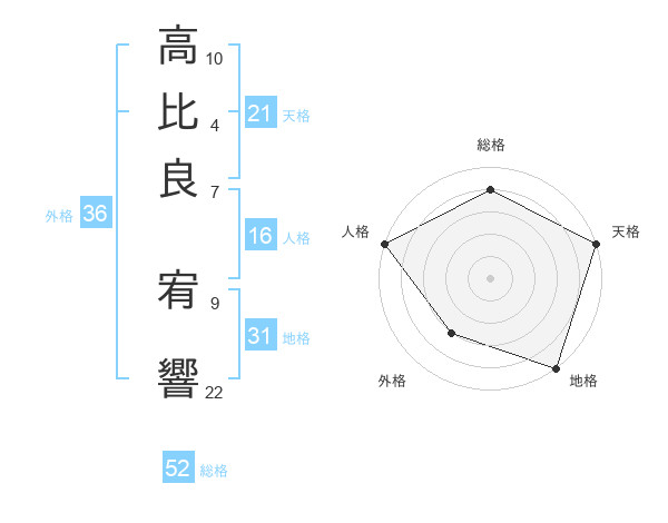 高比良 宥響さんの総格は52画の4点!