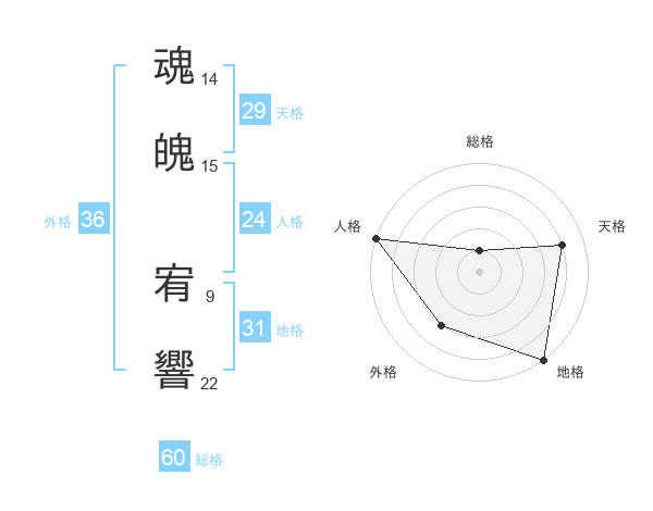 魂魄 宥響さんの総格は60画の1点!
