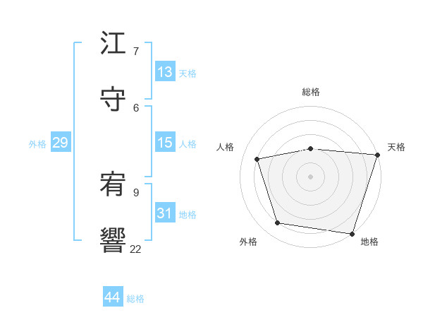 江守 宥響さんの総格は44画の2点!