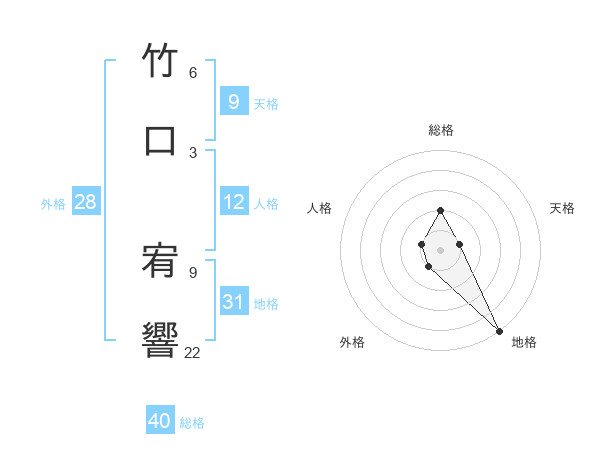 竹口 宥響さんの総格は40画の2点!