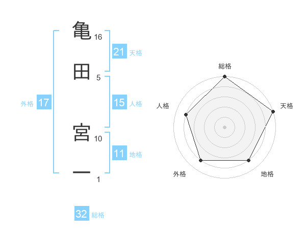 亀田 宮一さんの総格は32画の5点!