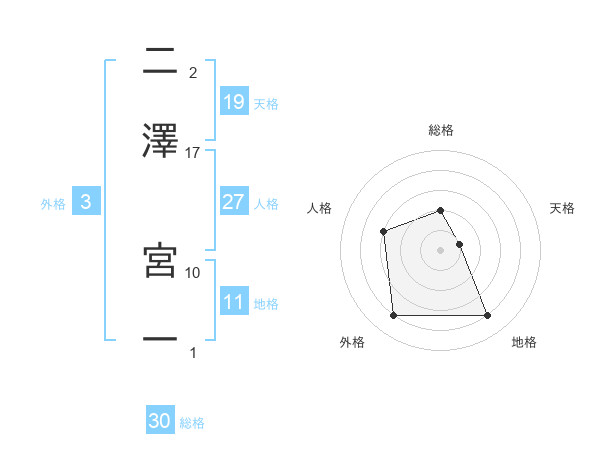 二澤 宮一さんの総格は30画の2点!