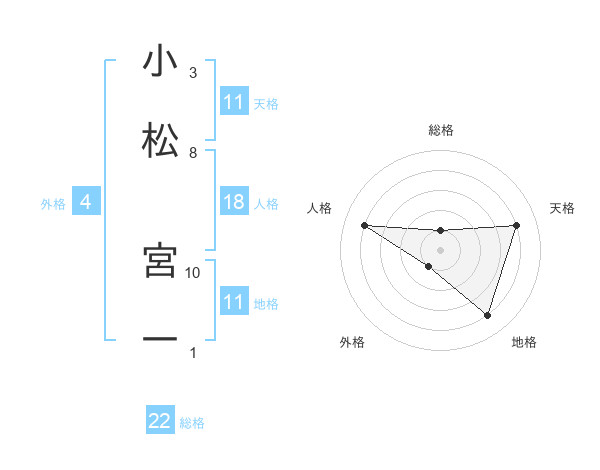 小松 宮一さんの天格は11画の4点!