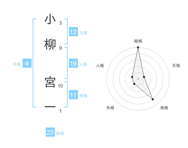 小柳 宮一さんの総格は23画の5点!