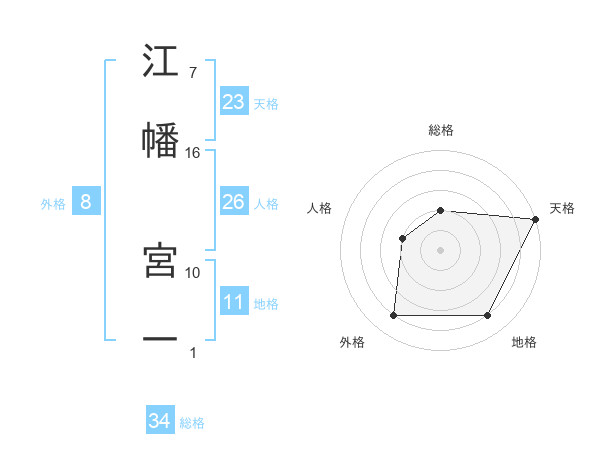 江幡 宮一さんの総格は34画の2点!