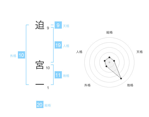 迫 宮一さんの総格は20画の1点!