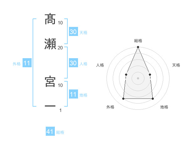 髙瀬 宮一さんの総格は41画の5点!