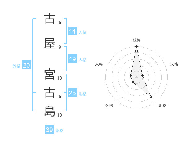 古屋 宮古島さんを姓名の画数から五運を鑑定