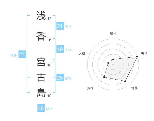 浅香 宮古島さんを姓名の画数から五運を鑑定