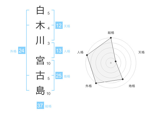 白木川 宮古島さんの総格は37画の5点!