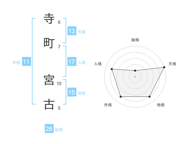 寺町 宮古さんの天格は13画の5点!