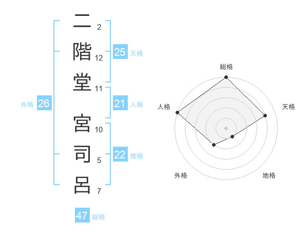 二階堂 宮司呂さんの総格は47画の5点!