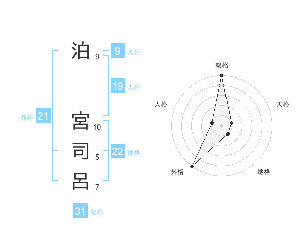 泊 宮司呂さんを姓名の画数から五運を鑑定