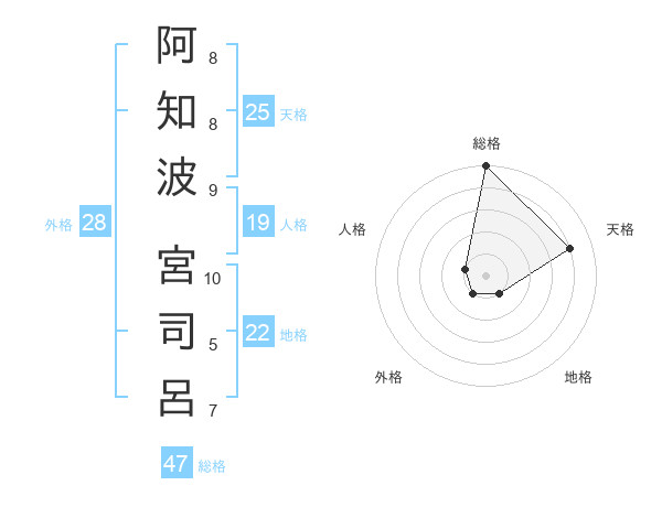 阿知波 宮司呂さんの総格は47画の5点!