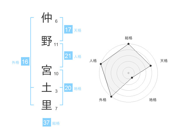 仲野 宮土里さんを姓名の画数から五運を鑑定