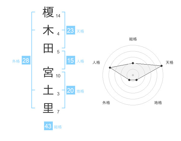 榎木田 宮土里さんの天格は23画の5点!