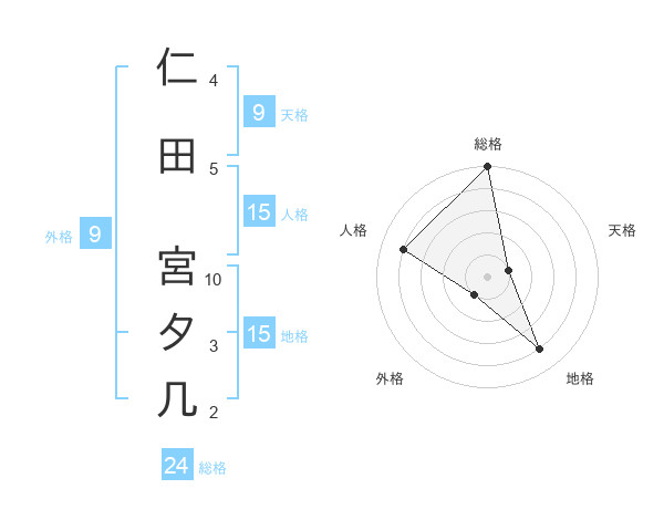 仁田 宮夕几さんの総格は24画の5点