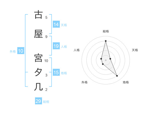 古屋 宮夕几さんを姓名の画数から五運を鑑定