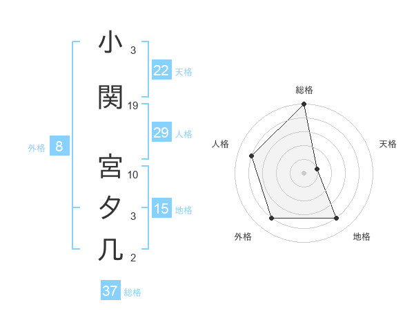 小関 宮夕几さんの総格は37画の5点
