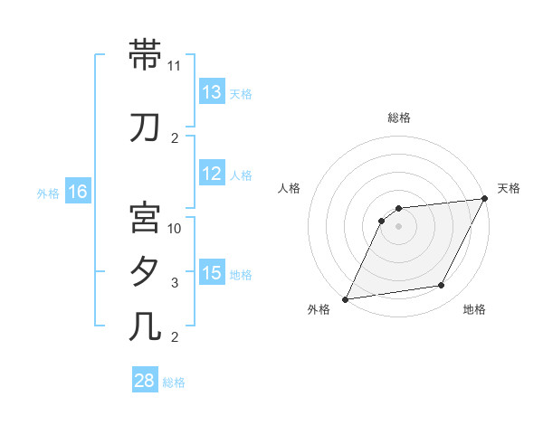 帯刀 宮夕几さんを姓名の画数から五運を鑑定