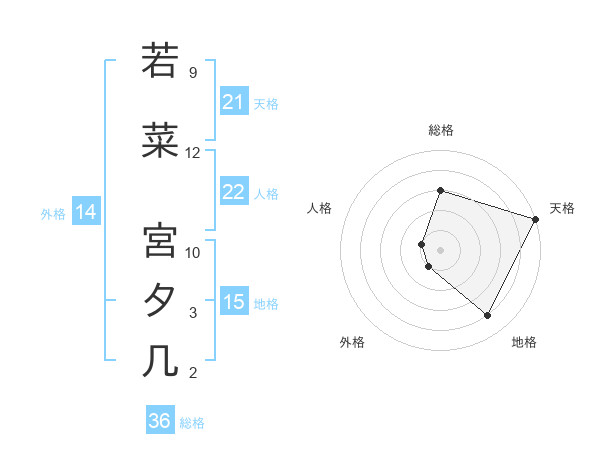 若菜 宮夕几さんの天格は21画の5点!