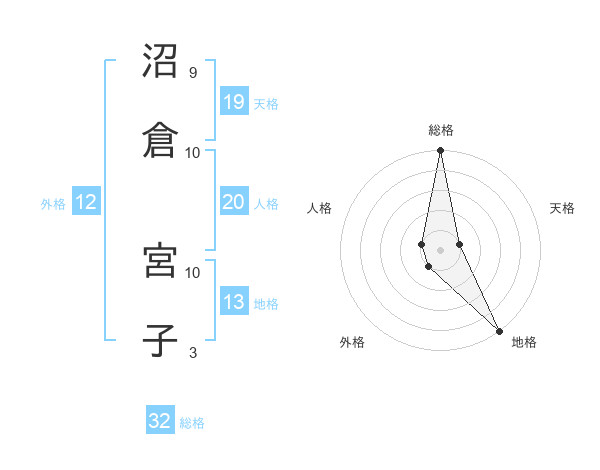 沼倉 宮子さんを姓名の画数から五運を鑑定