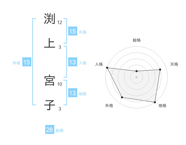 渕上 宮子さんの地格は13画の5点!