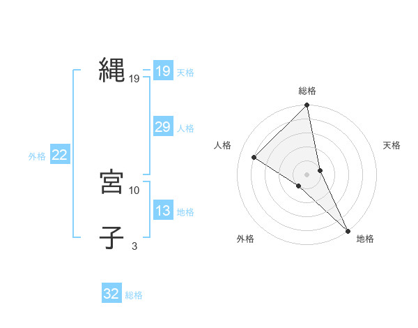 縄 宮子さんの外格は22画の1点!