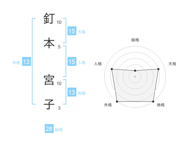 釘本 宮子さんを姓名の画数から五運を鑑定