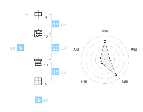中庭 宮田さんの総格は29画の4点!