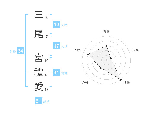 三尾 宮禮愛さんの総格は51画の3点