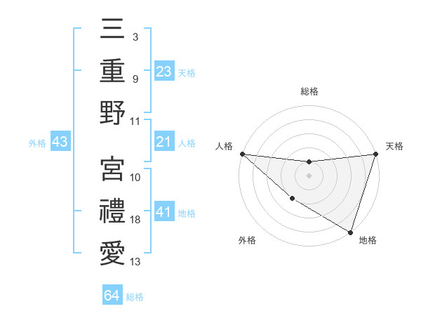 三重野 宮禮愛さんを姓名の画数から五運を鑑定