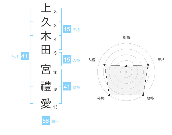 上久木田 宮禮愛さんを姓名の画数から五運を鑑定