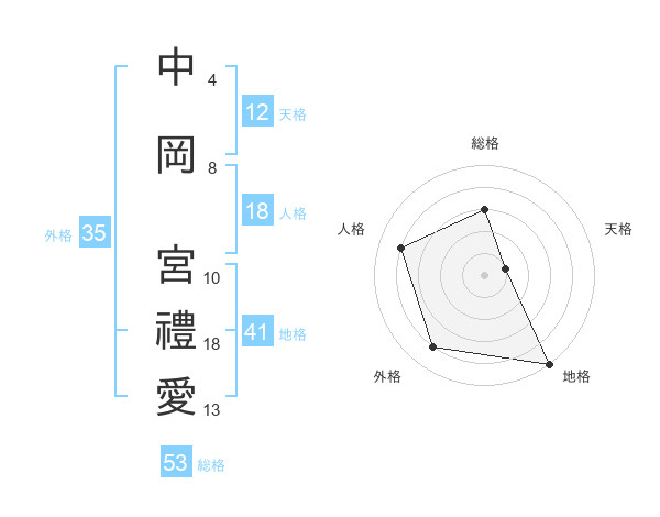 中岡 宮禮愛さんを姓名の画数から五運を鑑定