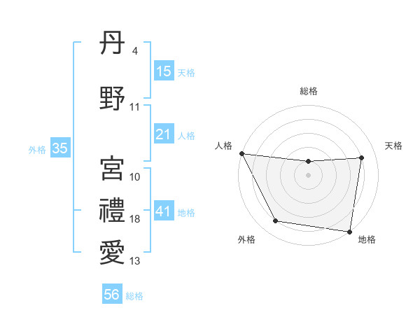 丹野 宮禮愛さんを姓名の画数から五運を鑑定