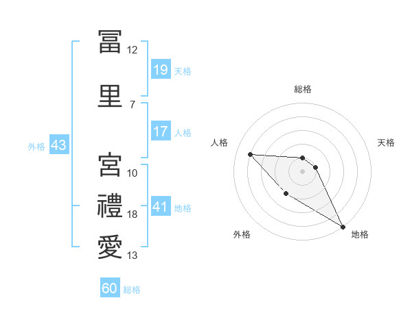 冨里 宮禮愛さんを姓名の画数から五運を鑑定