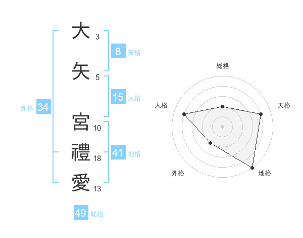 大矢 宮禮愛さんを姓名の画数から五運を鑑定