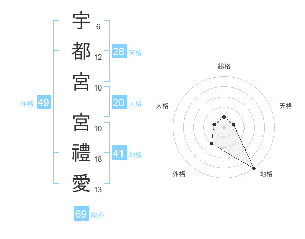 宇都宮 宮禮愛さんの地格は41画の5点!